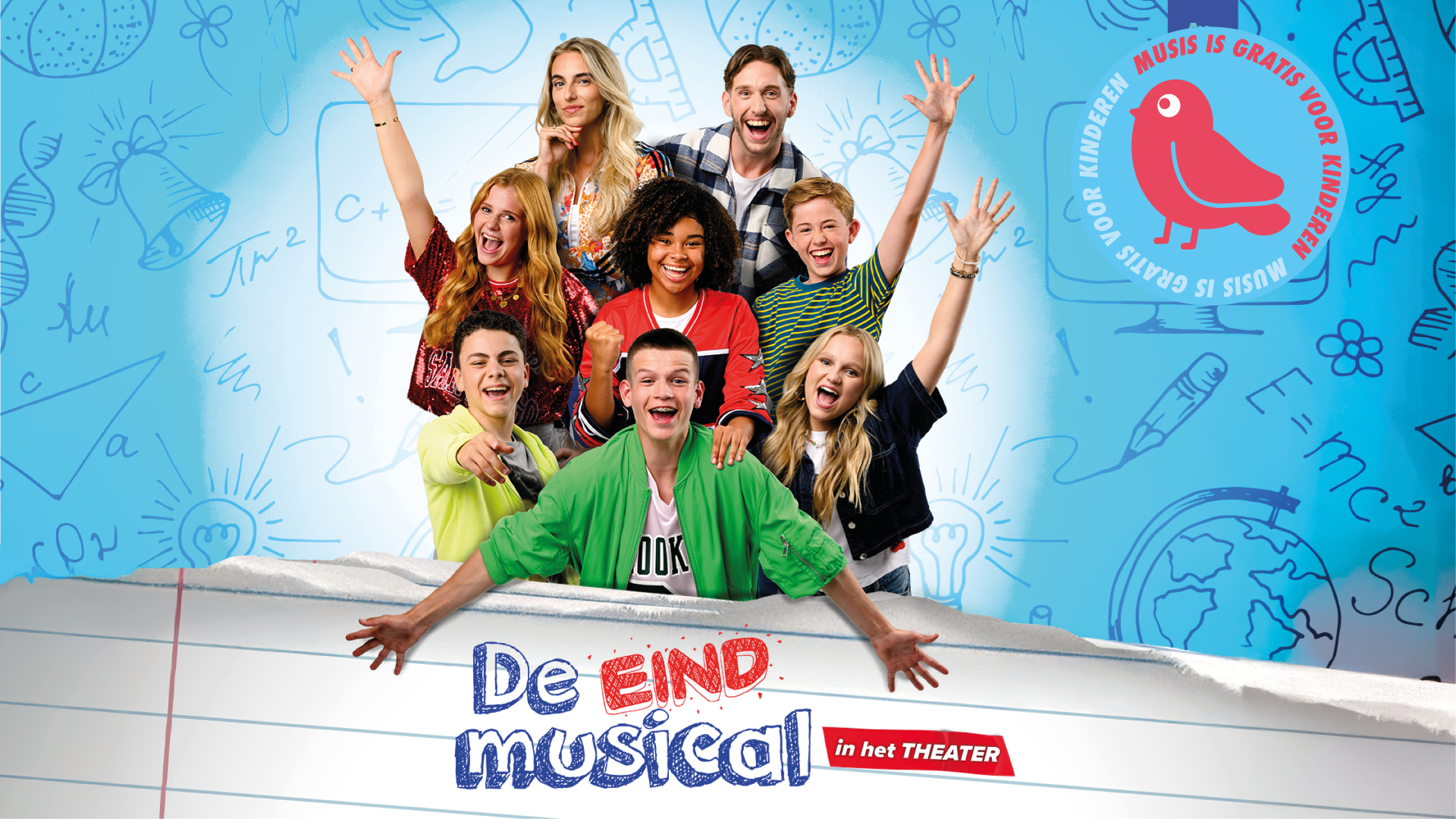 De Eindmusical in het Theater is een vrolijke, energieke musical voor jong en oud – over samenwerken, dromen najagen, social media en jezelf durven laten zien. Een familievoorstelling vol vriendschap, liefde, strijd, humor, avontuur en muziek, met volop herkenning en onvergetelijke momenten voor elk kind van 6 tot 14 jaar.