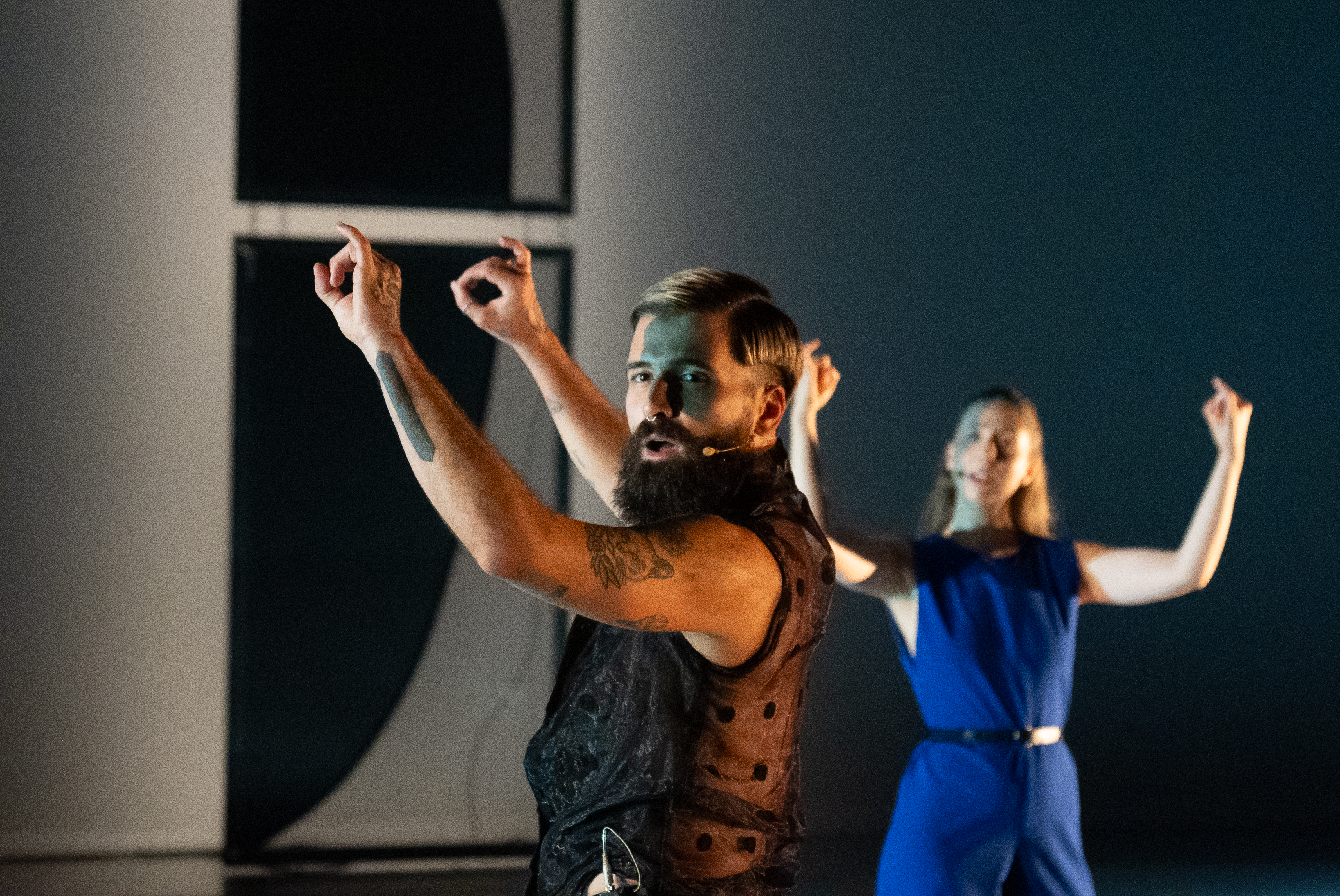 Als middelpunt in een ensemble van dansende sirenen, muzen en amazones steelt de veelzijdige sopraan Elisabeth Hetherington de show in ‘Euterpians’ van Andrea Leine en Harijono Roebana.