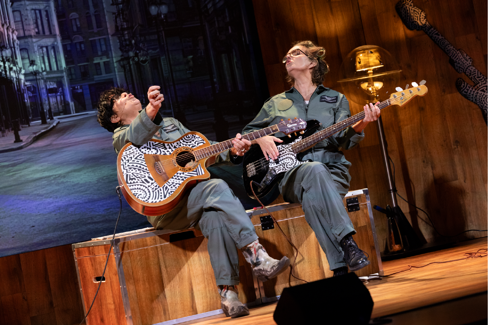 “Frédérique Spigt en Sanne Wallis de Vries buiten fraai uit hoe ze verschillen in een voorstelling over hun vriendschap.”