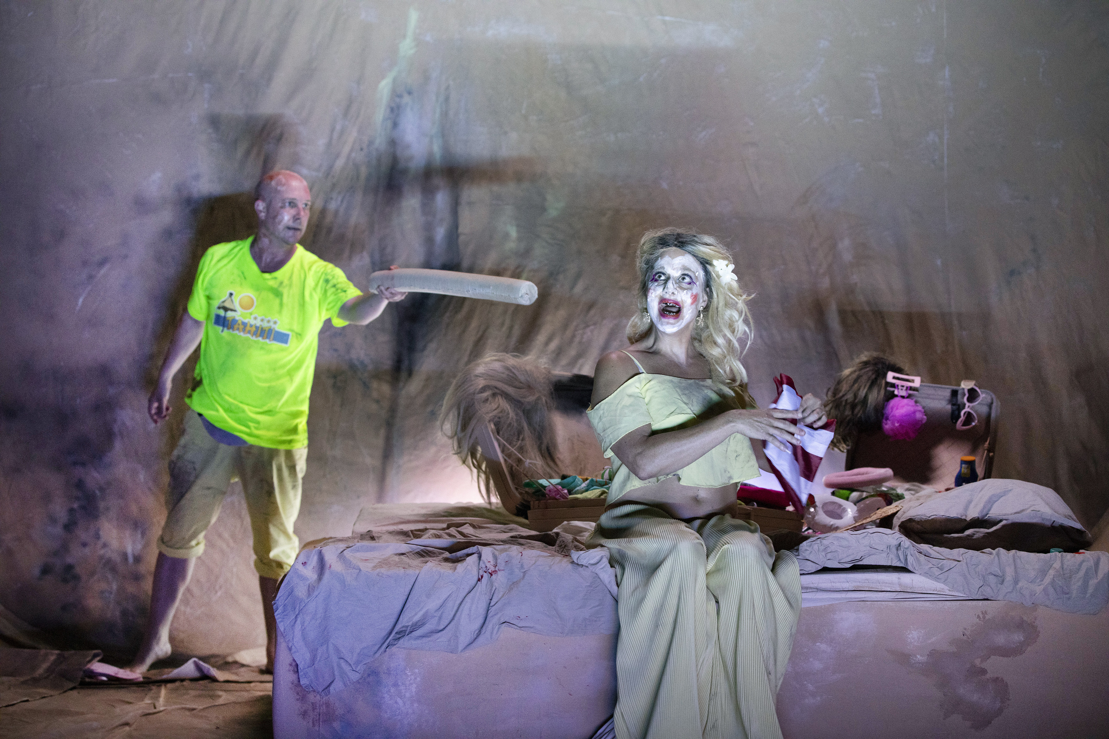 Een absurdistische survivalthriller waarin drie overlevers vechten voor hun menselijkheid – met een knagend geweten en steeds minder te verliezen.