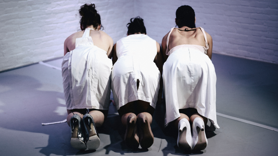 Bekroonde choreografie van WARD/WARD opnieuw gedanst. Vrouw en vlees, schoonheid en vergankelijkheid, rauw en teder.